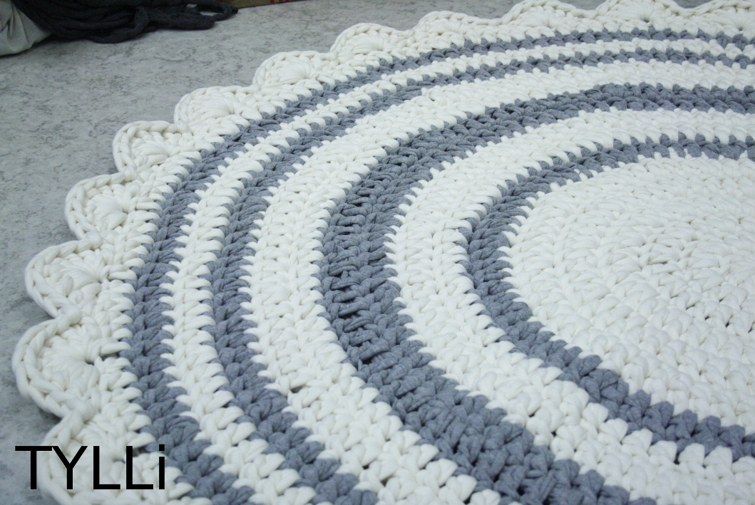 Ja sitten on virkkailtu raitoja, tällä kertaa siis pyöreisiin mattoihin.